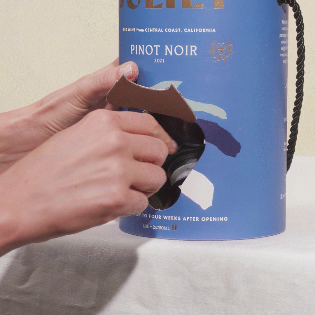 Remove the foil from the tap and press down on the red button to pour. Enjoy your delicious wine for up to 6 weeks after opening!